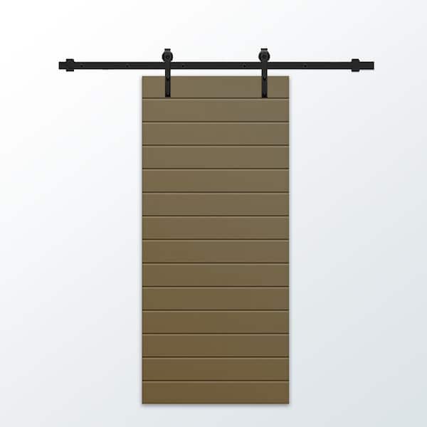 36 in. x 80 in. Olive Green Painted Composite MDF Paneled Interior Sliding Barn Door with Hardware Kit