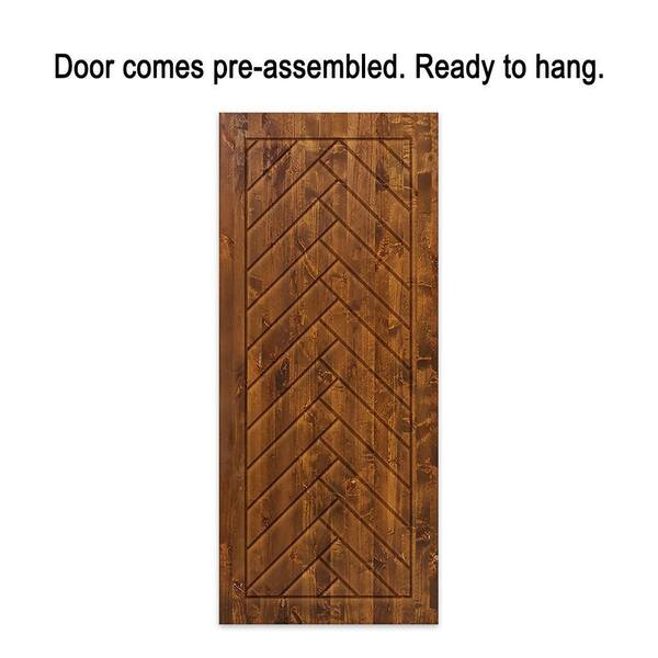 36 in. x 80 in. Walnut Stained Pine Wood Modern Interior Sliding Barn Door with Hardware Kit