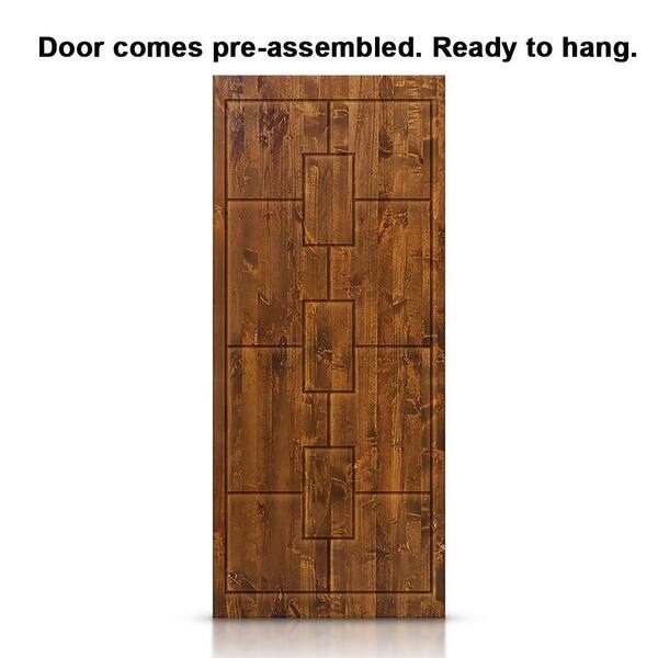 36 in. x 80 in. Walnut Stained Pine Wood Modern Interior Sliding Barn Door with Hardware Kit
