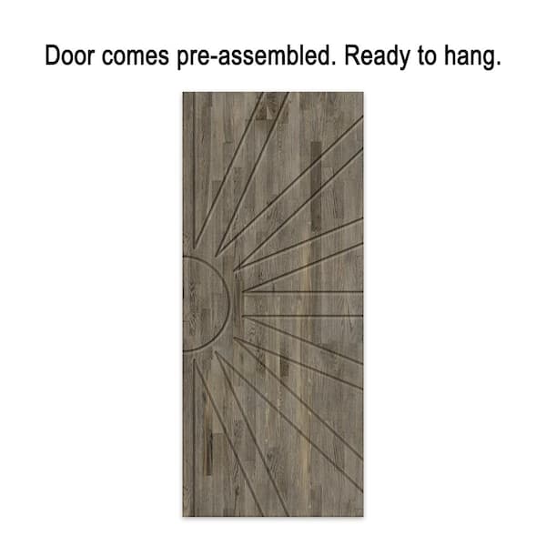 36 in. x 80 in. Weather Gray Stained Pine Wood Modern Interior Sliding Barn Door with Hardware Kit