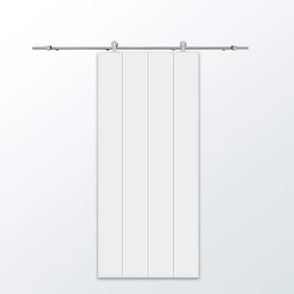 36 in. x 80 in. White Painted Composite MDF Paneled Interior Sliding Barn Door with Hardware Kit