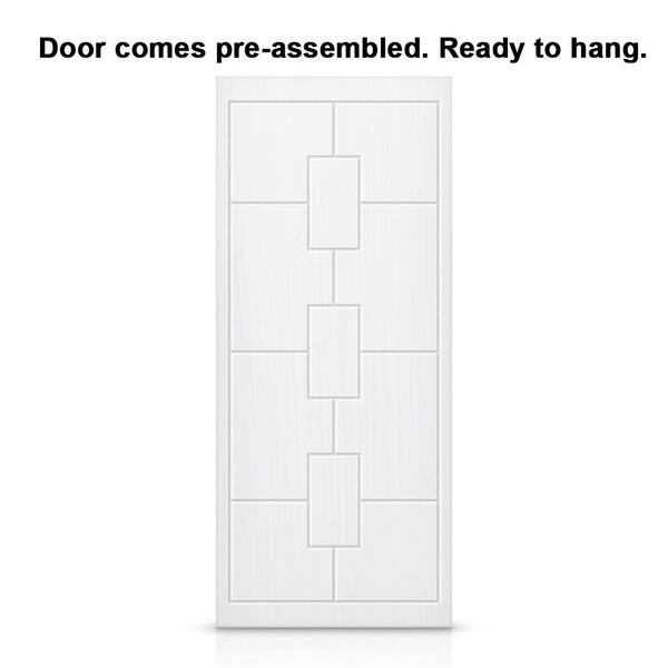 36 in. x 80 in. White Painted Composite MDF Paneled Interior Sliding Barn Door with Hardware Kit