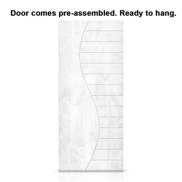 36 in. x 80 in. White Stained Pine Wood Modern Interior Sliding Barn Door with Hardware Kit