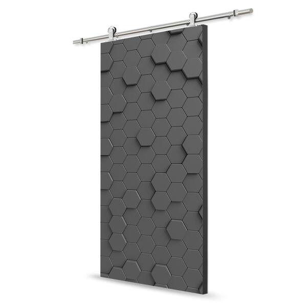 36 in. x 84 in. Artisan Print Series Gray Hexagons MDF Modern Interior Sliding Barn Door with Hardware Kit