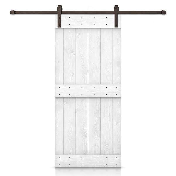 36 in. x 84 in. Distressed Mid-Bar Series Light Cream Solid with Hardware Kit Pine Wood Interior Sliding Barn Door