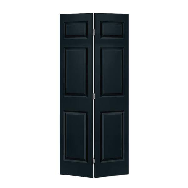 36 in. x 84 in. Hollow Core 6 Panel Shaker Charcoal Gray Painted MDF Composite Bi-Fold Closet Door with Hardware Kit