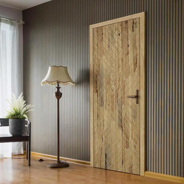 36 in. x 84 in. Hollow Core Weather Oak Stained Pine Wood Interior Door Slab