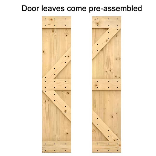 36 in. x 84 in. K Pre Assembled Solid Core Unfinished Wood Bi-fold Barn Door with Sliding Hardware Kit