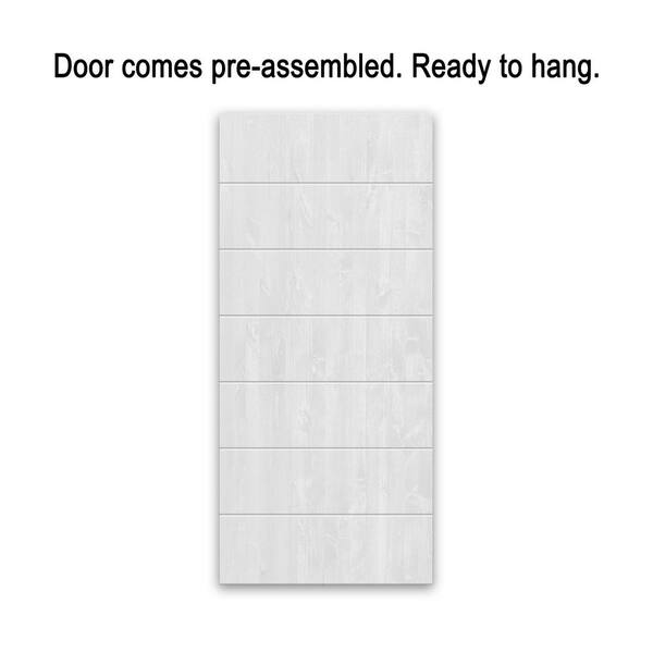 36 in. x 84 in. White Stained Pine Wood Modern Interior Sliding Barn Door with Hardware Kit
