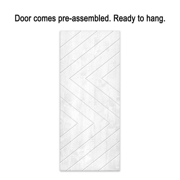36 in. x 84 in. White Stained Pine Wood Modern Interior Sliding Barn Door with Hardware Kit