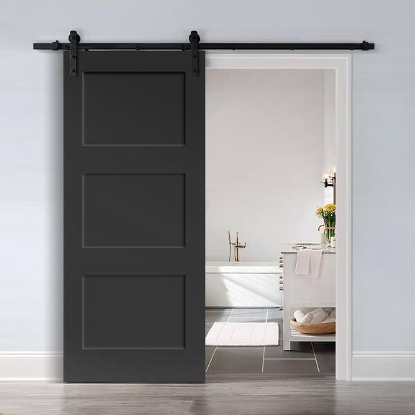 36 in. x 96 in. 3 Panel Shaker Hollow Core Black Painted Composite Interior Sliding Barn Door with Hardware Kit