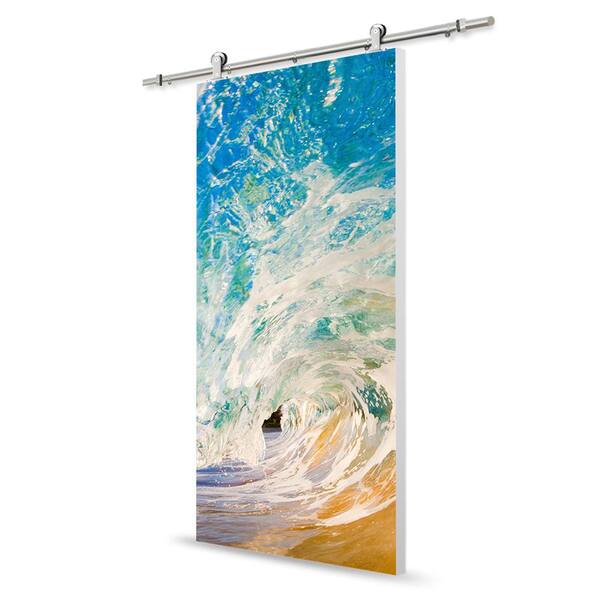 36 in. x 96 in. Artisan Print Series Ocean Wave MDF Modern Interior Sliding Barn Door with Hardware Kit