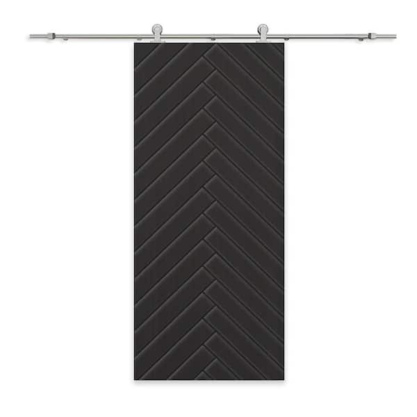 36 in. x 96 in. Black Painted Composite MDF Paneled Interior Sliding Barn Door with Hardware Kit