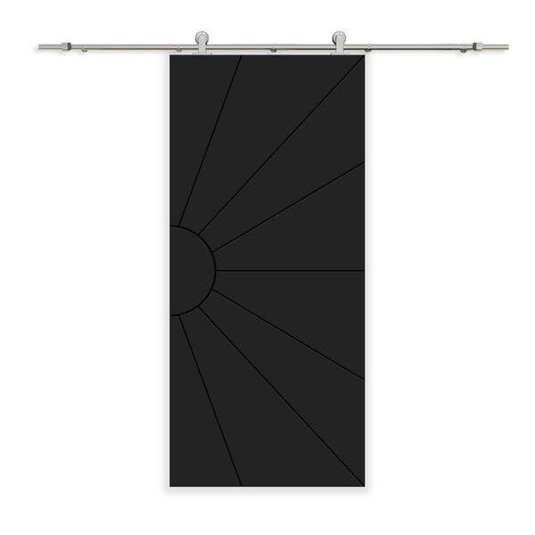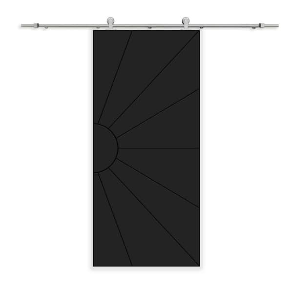 36 in. x 96 in. Black Painted Composite MDF Paneled Interior Sliding Barn Door with Hardware Kit
