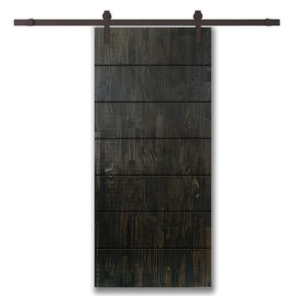 36 in. x 96 in. Charcoal Black Stained Pine Wood Modern Interior Sliding Barn Door with Hardware Kit