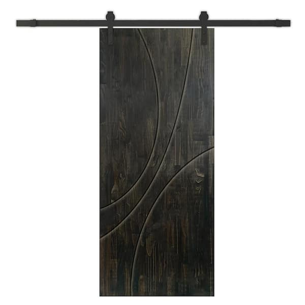 36 in. x 96 in. Charcoal Black Stained Pine Wood Modern Interior Sliding Barn Door with Hardware Kit