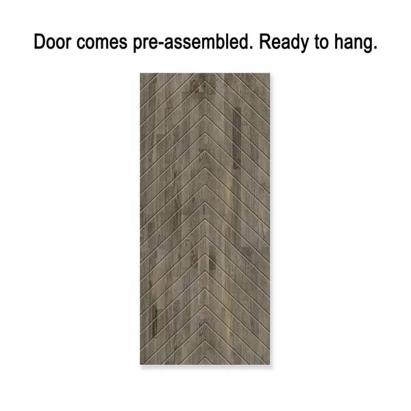 36 in. x 96 in. Weather Gray Stained Pine Wood Modern Interior Sliding Barn Door with Hardware Kit