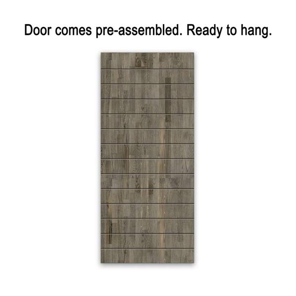 36 in. x 96 in. Weather Gray Stained Pine Wood Modern Interior Sliding Barn Door with Hardware Kit