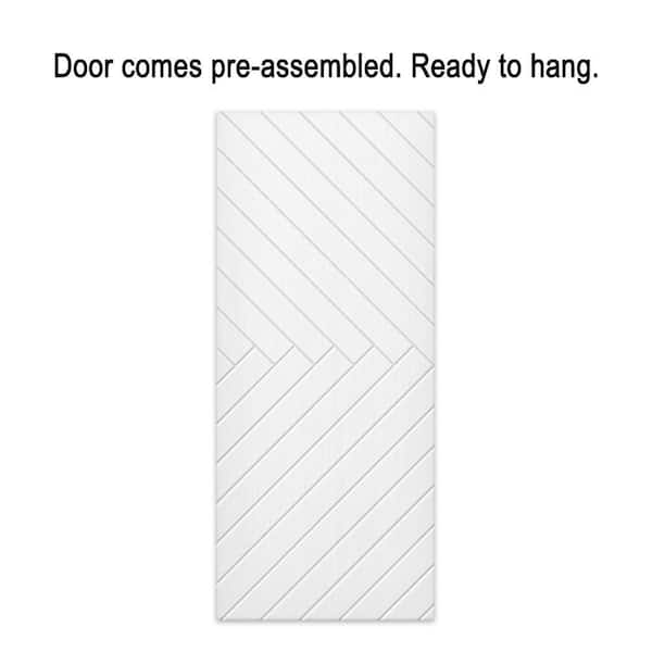 36 in. x 96 in. White Painted Composite MDF Paneled Interior Sliding Barn Door with Hardware Kit