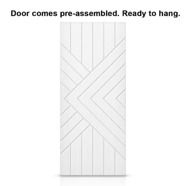 36 in. x 96 in. White Painted Composite MDF Paneled Interior Sliding Barn Door with Hardware Kit