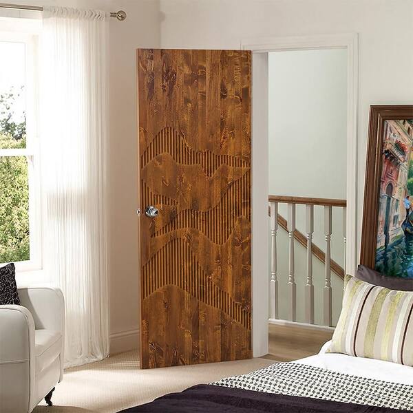 38 in. x 80 in. Hollow Core Walnut Stained Pine Wood Interior Door Slab
