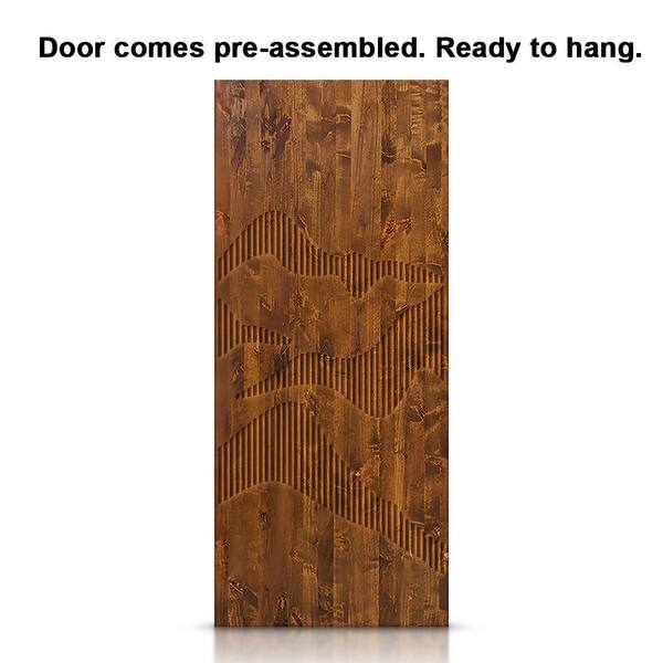 38 in. x 80 in. Walnut Stained Pine Wood Modern Interior Sliding Barn Door with Hardware Kit