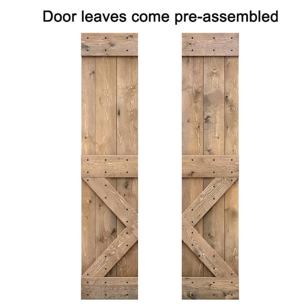 38 in. x 84 in. Solid Core Light Brown Stained Wood Bi-Fold Barn Door with Sliding Hardware Kit Mini X Pre Assembled
