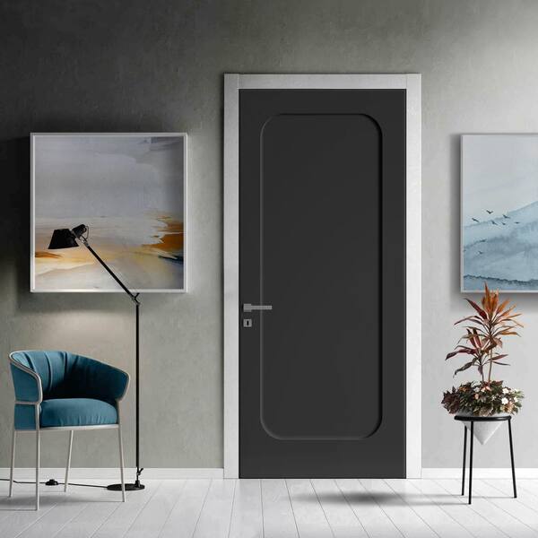 40 in. x 84 in. Left-Handed Curved 1 Panel Shaker Black Painted Smooth Composite Single Prehung Interior Door