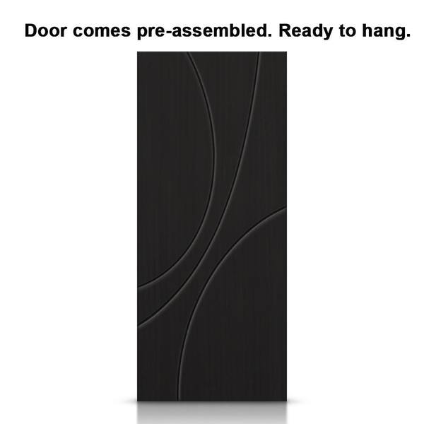 42 in. x 80 in. Black Painted Composite MDF Paneled Interior Sliding Barn Door with Hardware Kit