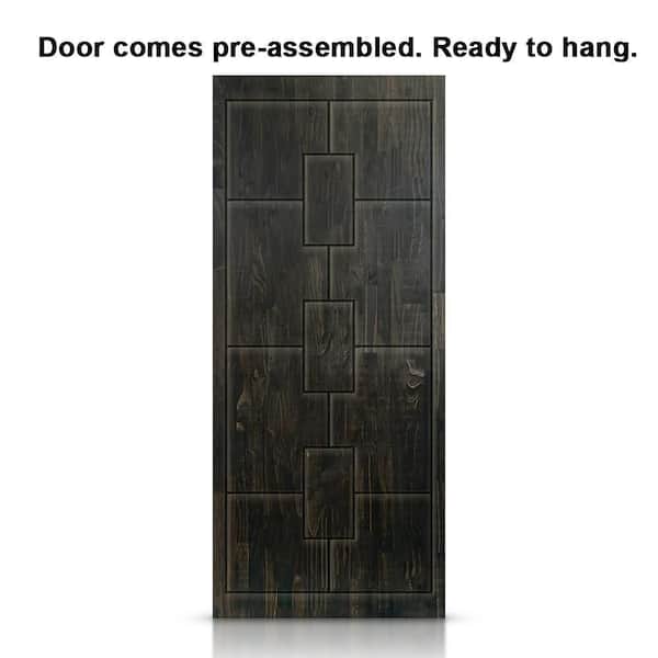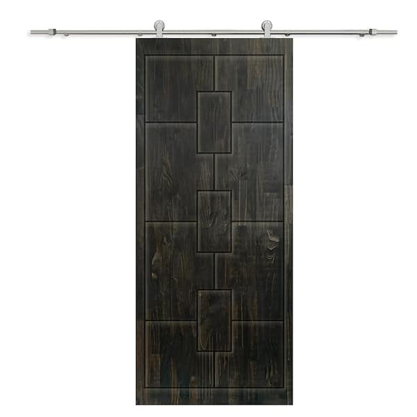 42 in. x 80 in. Charcoal Black Stained Pine Wood Modern Interior Sliding Barn Door with Hardware Kit