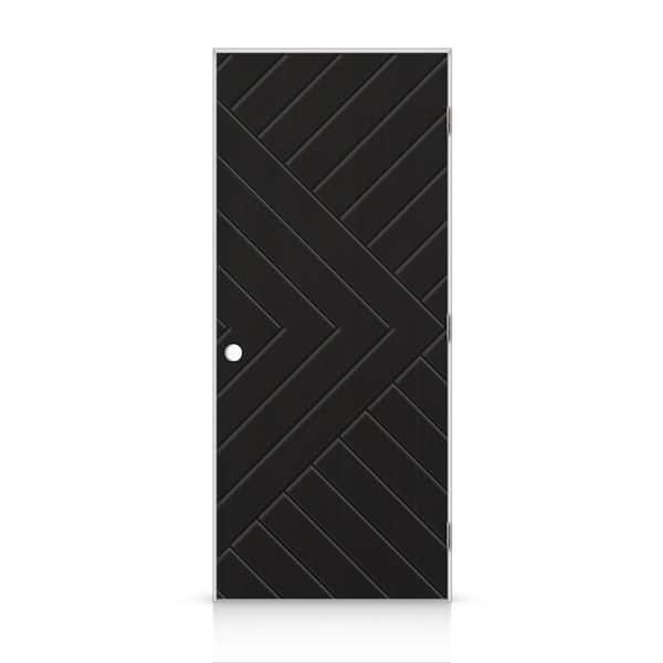 42 in. x 80 in. Chevron Arrow Left-Handed Hollow-Core Black Painted Composite Single Prehung Interior Door