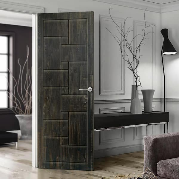 42 in. x 80 in. Hollow Core Charcoal Black Stained Pine Wood Interior Door Slab