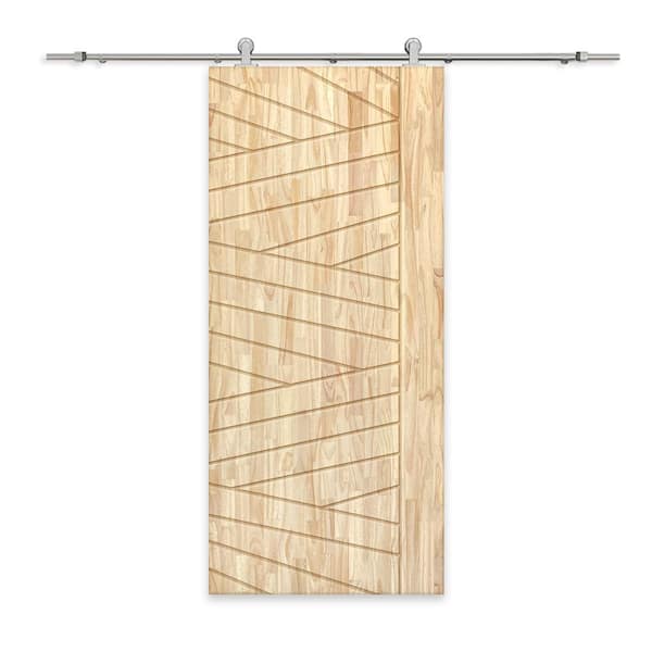 42 in. x 80 in. Natural Pine Wood Unfinished Interior Sliding Barn Door with Hardware Kit