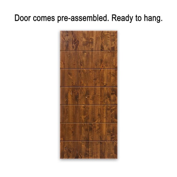 42 in. x 80 in. Walnut Stained Pine Wood Modern Interior Sliding Barn Door with Hardware Kit