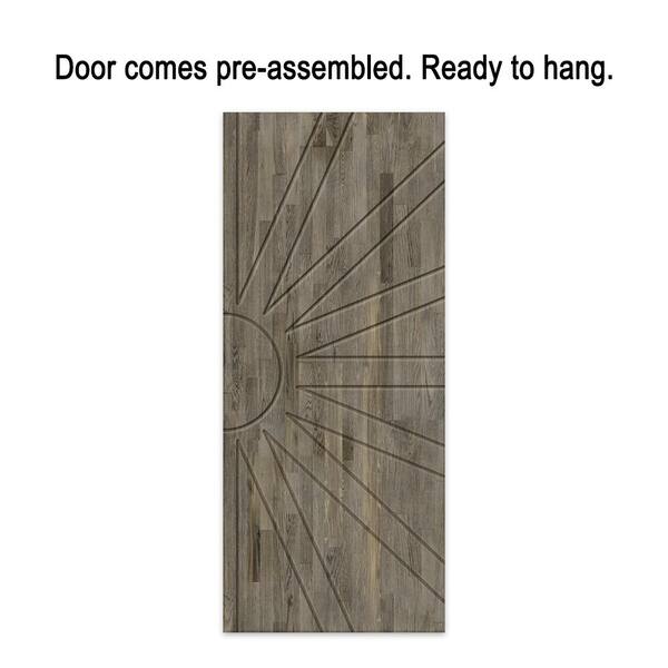 42 in. x 80 in. Weather Gray Stained Pine Wood Modern Interior Sliding Barn Door with Hardware Kit