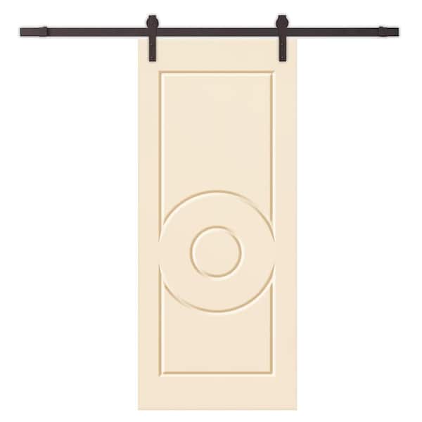 42 in. x 84 in. Beige Painted Composite MDF Paneled Interior Sliding Barn Door with Hardware Kit