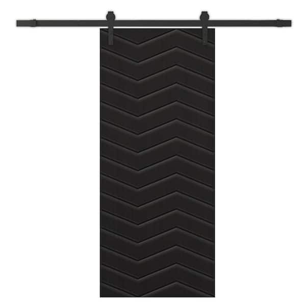 42 in. x 84 in. Black Painted Composite MDF Paneled Interior Sliding Barn Door with Hardware Kit
