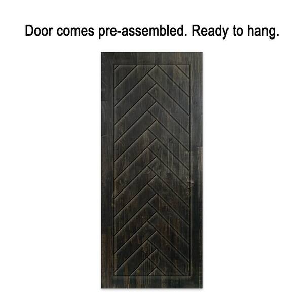42 in. x 84 in. Charcoal Black Stained Pine Wood Modern Interior Sliding Barn Door with Hardware Kit