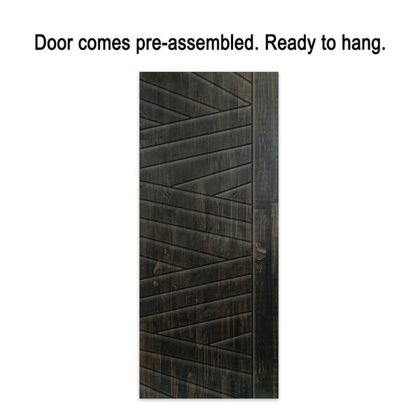 42 in. x 84 in. Charcoal Black Stained Pine Wood Modern Interior Sliding Barn Door with Hardware Kit