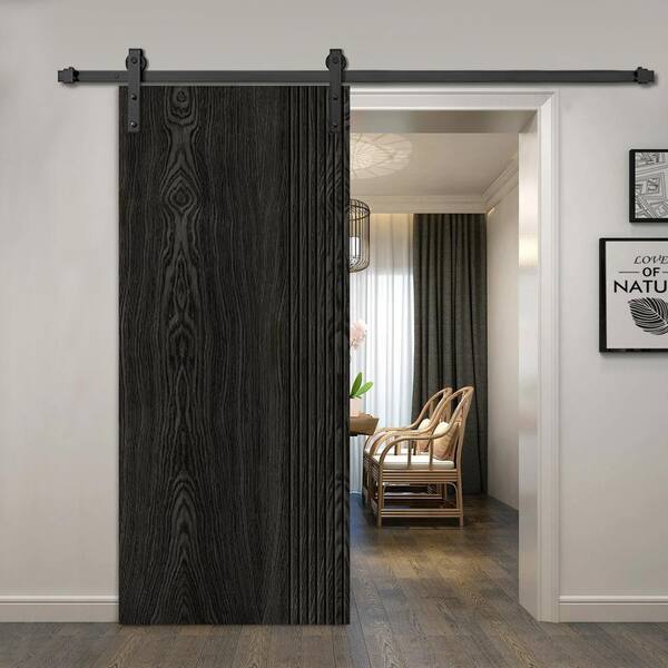 42 in. x 84 in. Hollow Core Charcoal Black Stained Oak Veneer Composite Interior Sliding Barn Door with Hardware Kit
