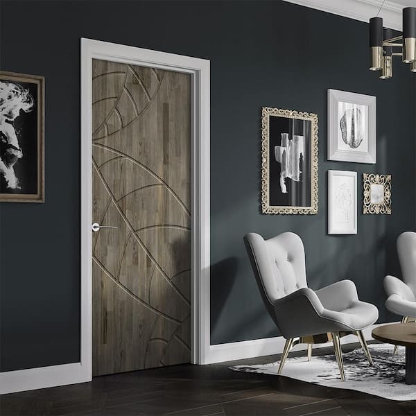 42 in. x 84 in. Hollow Core Weather Gray Stained Pine Wood Interior Door Slab