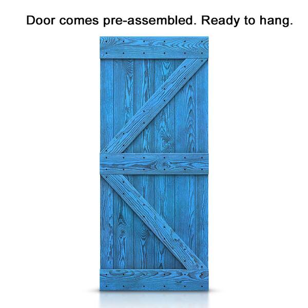 42 in. x 84 in. K-Bar Ready to Hang Wire Brushed Blue Thermally Modified Solid Wood Sliding Barn Door with Hardware Kit