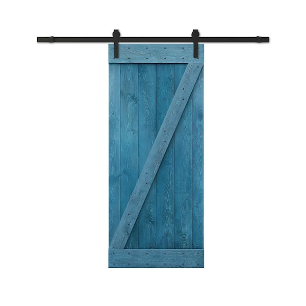 42 in. x 84 in. Ocean Blue Stained DIY Wood Interior Sliding Barn Door with Hardware Kit