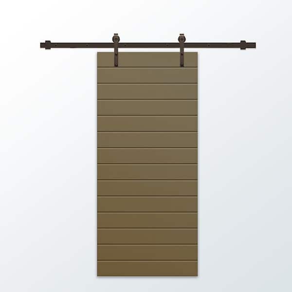 42 in. x 84 in. Olive Green Painted Composite MDF Paneled Interior Sliding Barn Door with Hardware Kit