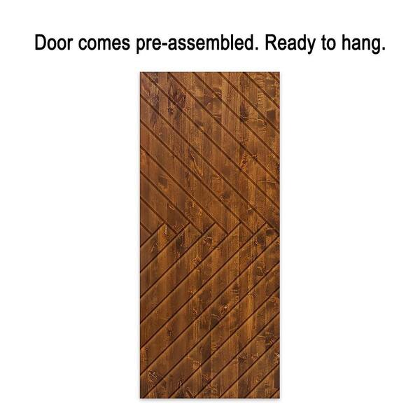 42 in. x 84 in. Walnut Stained Pine Wood Modern Interior Sliding Barn Door with Hardware Kit