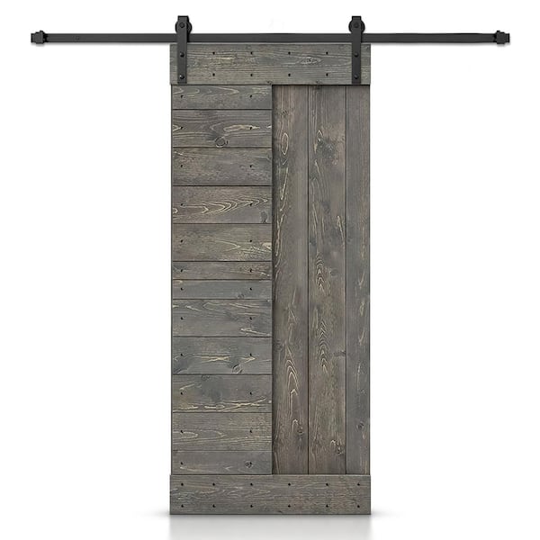 42 in. x 84 in. Weather Gray Stained DIY Knotty Pine Wood Interior Sliding Barn Door with Hardware Kit