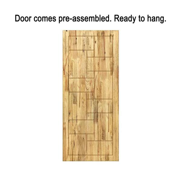 42 in. x 84 in. Weather Oak Stained Pine Wood Modern Interior Sliding Barn Door with Hardware Kit