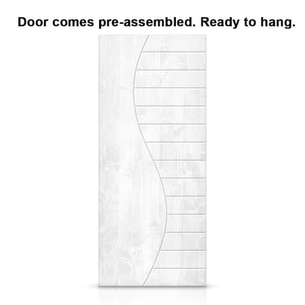 42 in. x 84 in. White Stained Pine Wood Modern Interior Sliding Barn Door with Hardware Kit