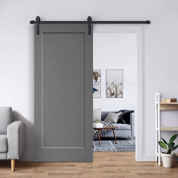 42 in. x 96 in. 1-Panel Shaker Hollow Core Light Gray Painted Composite Interior Sliding Barn Door with Hardware Kit