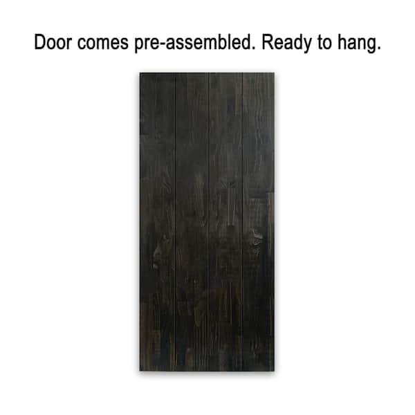 42 in. x 96 in. Charcoal Black Stained Pine Wood Modern Interior Sliding Barn Door with Hardware Kit
